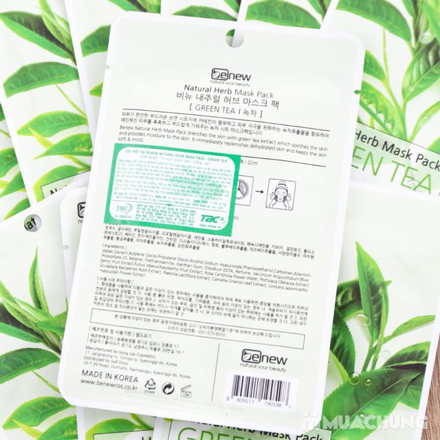 Bộ 10 miếng mặt nạ trà xanh Benew giảm thâm, sáng da Hàn Quốc 22ml thêm móc khoá