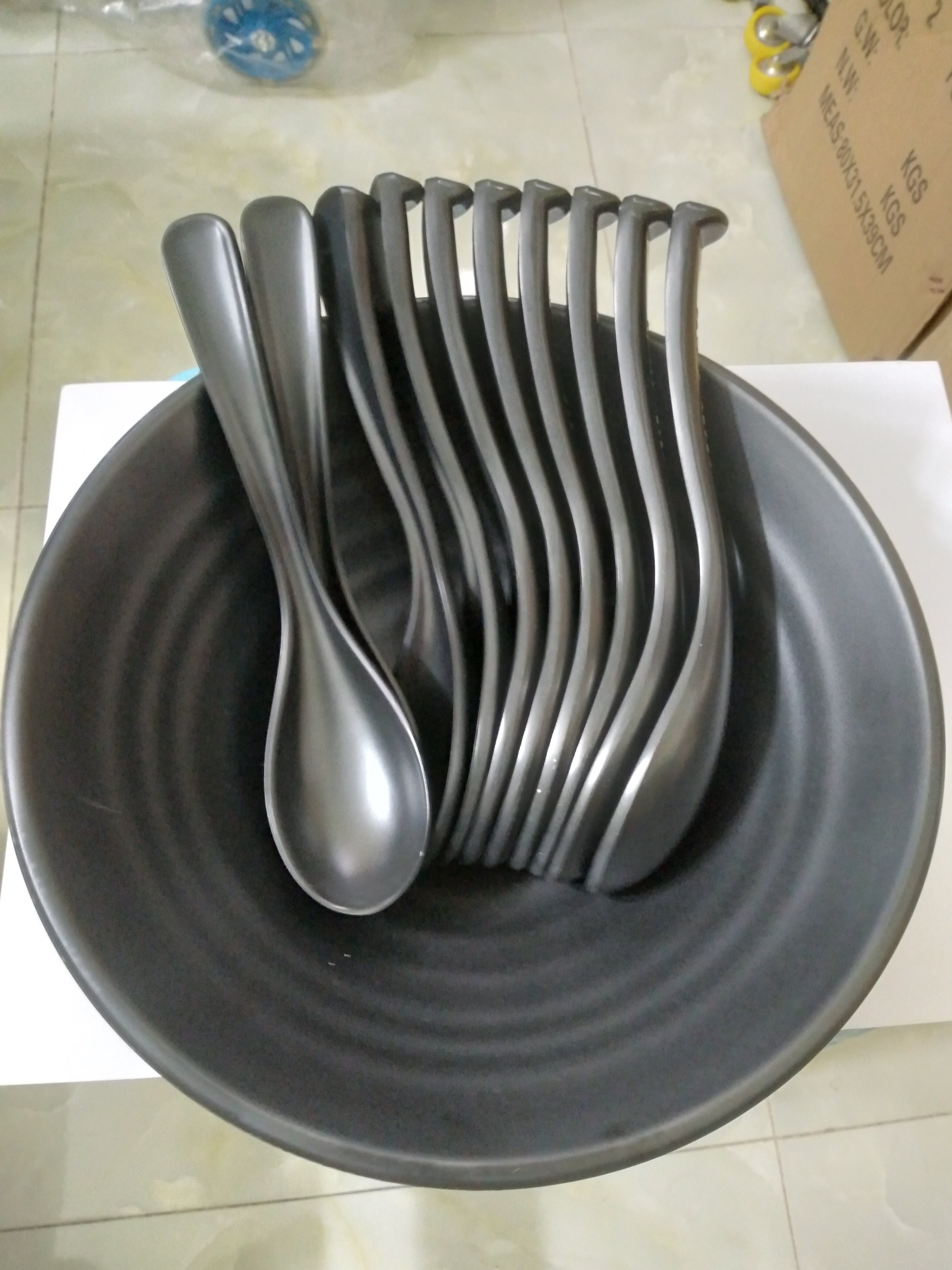 Bộ 10 muỗng cơm,súp, phở nhựa Melamine nhám đen Size 17cm