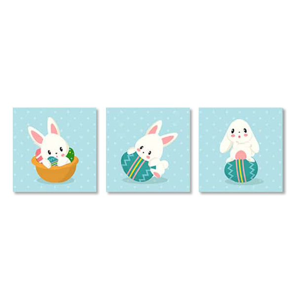 Bộ 3 Tranh Treo Tường Động Vật "Thỏ Và Trứng" W562