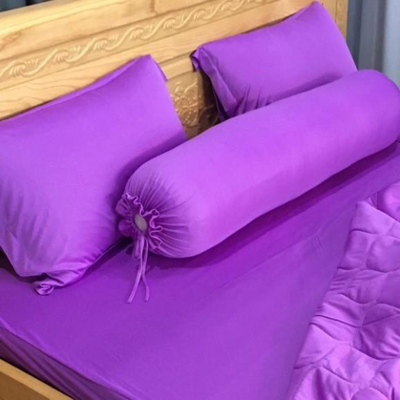 ( Rẻ Vô Địch) Bộ 4 Món Ga Gối Thun Mát Mềm Thun Lạnh Cao Cấp AT HOME - Tím Cà - 1m6 x 2m x 15cm...