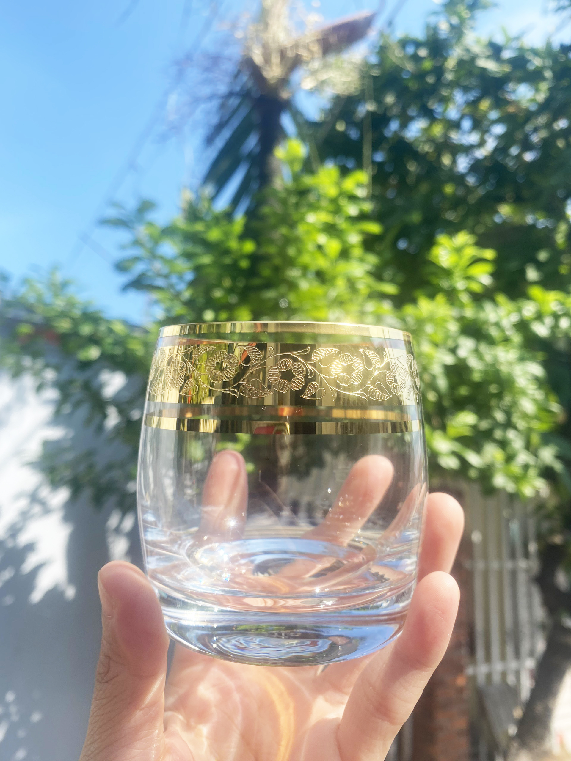 Bộ 6 ly uống whisky mạ vàng họa tiết hoa mai IDeal 230ml