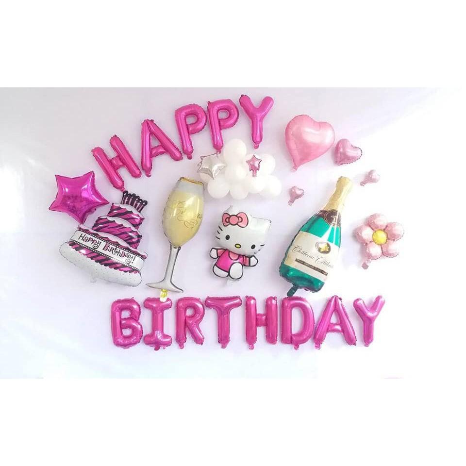 Bộ Bóng Chữ Happy Birthday + kitty + ly chai