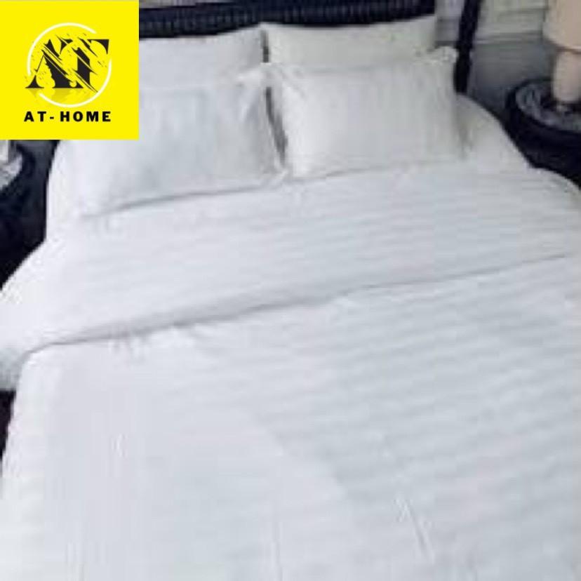 Bộ Chăn Drap Gối COTTON SỌC 3F Vải Cotton Lụa - MÀU TRẮNG - AT HOME - 1m6x2mx20cm...