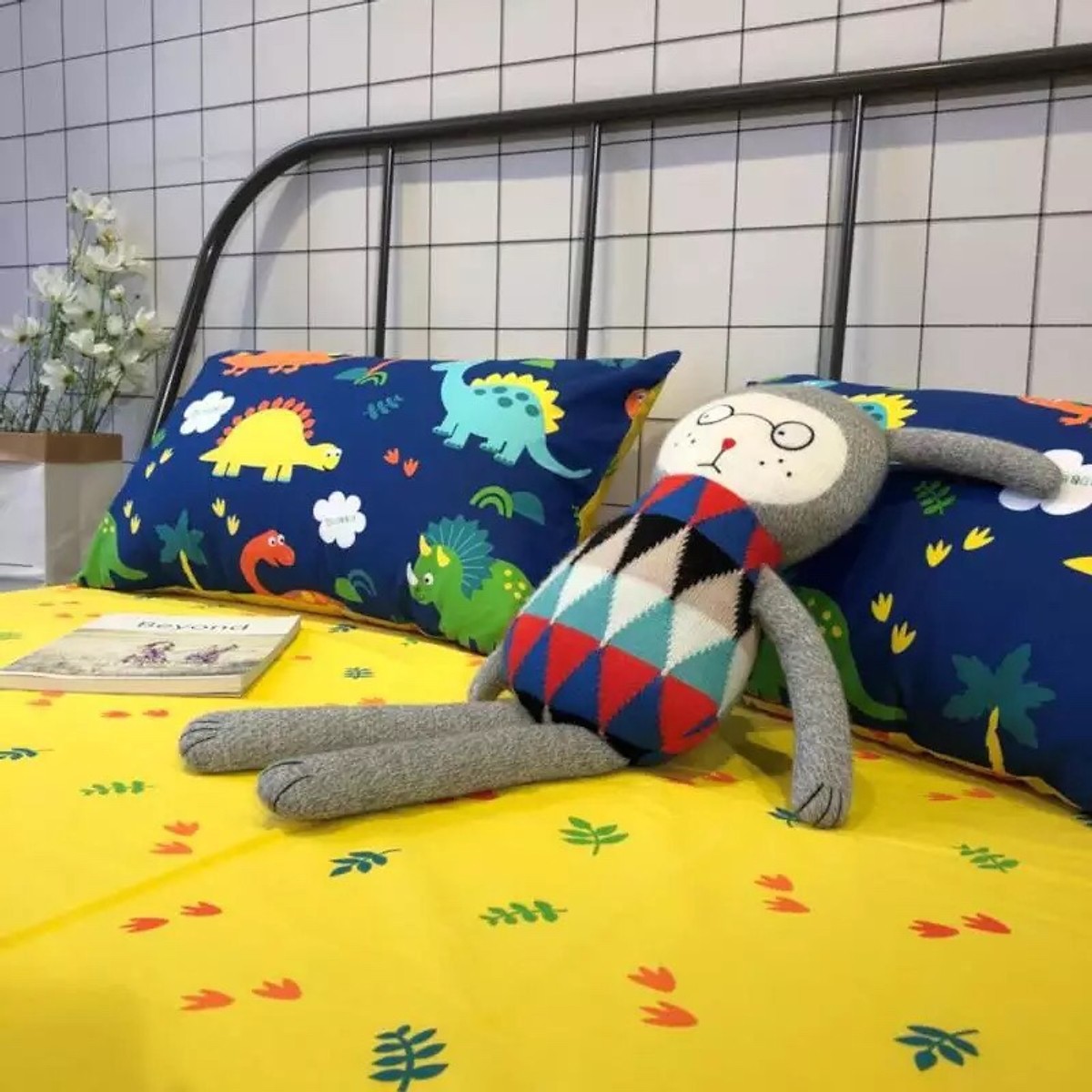 Bộ chăn ga gối cotton cao cấp PL1 - Khủng Long - Tặng kèm 1 móc khóa Houston