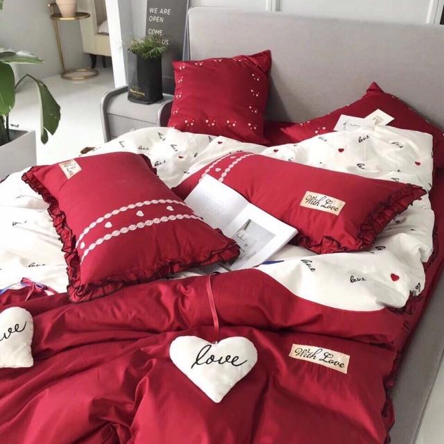 Bộ ga gối lụa tim 6 món hàng đẹp