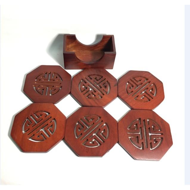 BỘ LÓT LÝ 6 CHIẾC GỖ HƯƠNG ĐỤC KHẮC CHỮ PHÚC - MẪU CÁNH BÁT GIÁC