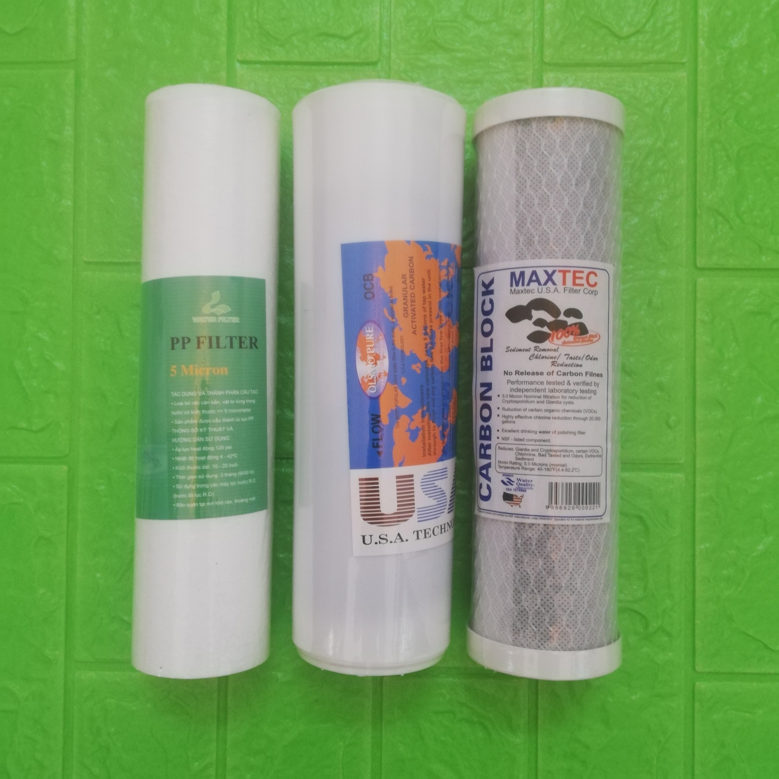 Bộ 3 lõi lọc nước 1,2,3,4 thay cho máy lọc nước ro trên thị trường. Tặng kèm bút đo nước TDS.1 lõi lọc nước số 1 sợi bông PP khe hở 5 micromet .1 lõi lọc nước số 2 OCB than hoạt tính dạng hạt .1 lõi l...