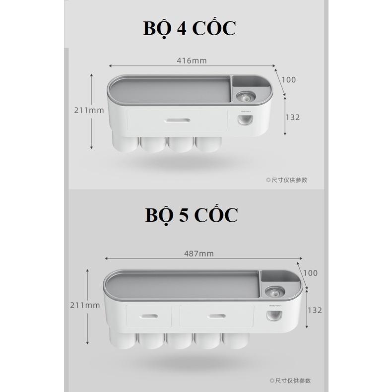 Bộ Nhả Kem 5 Cốc Treo Bàn Chải Đánh Răng Dán Tường Siêu Chắc