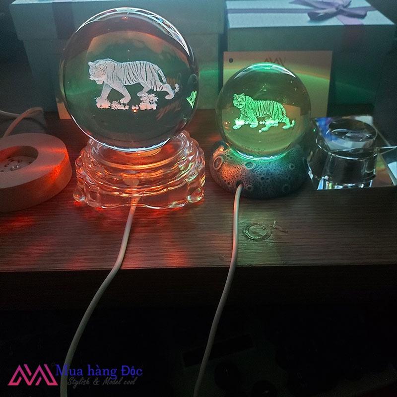 Bộ Quà Tặng Quả Cầu Pha Lê 3D larser LED 12 Con Giáp Tuổi Mùi
