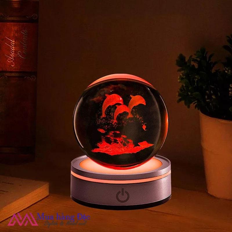 Bộ Quà Tặng Quả Cầu Pha Lê 3D LED Cặp Đôi Cá heo 6CM