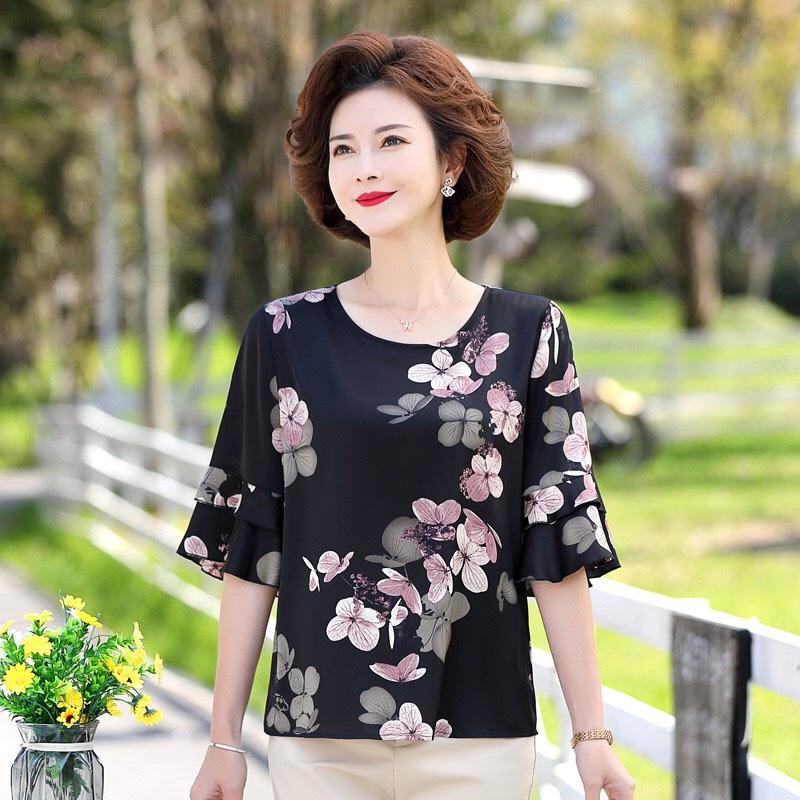 ️Có Big Size️Áo Kiểu Trung Niên Phối Họa Tiết Hoa Sang Trọng Cho Mẹ U50-80