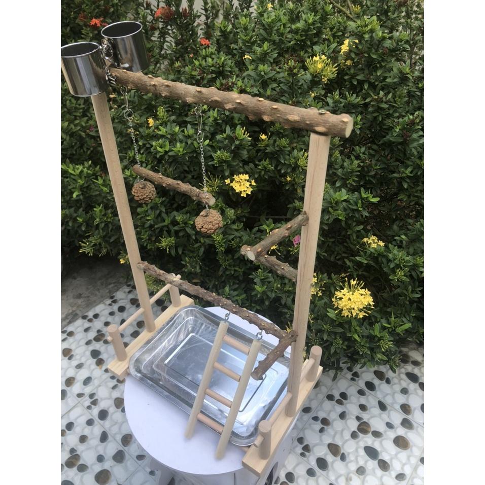Cầu đứng gỗ dành cho chim, vẹt size nhỏ, size trung như lovebird, yến phụng, cock, sun, xích, ngực hồng, Kích thước : 36,5x23x57 Thuận tiện để bàn, là khu vui chơi cho vẹt, cũng góp p...