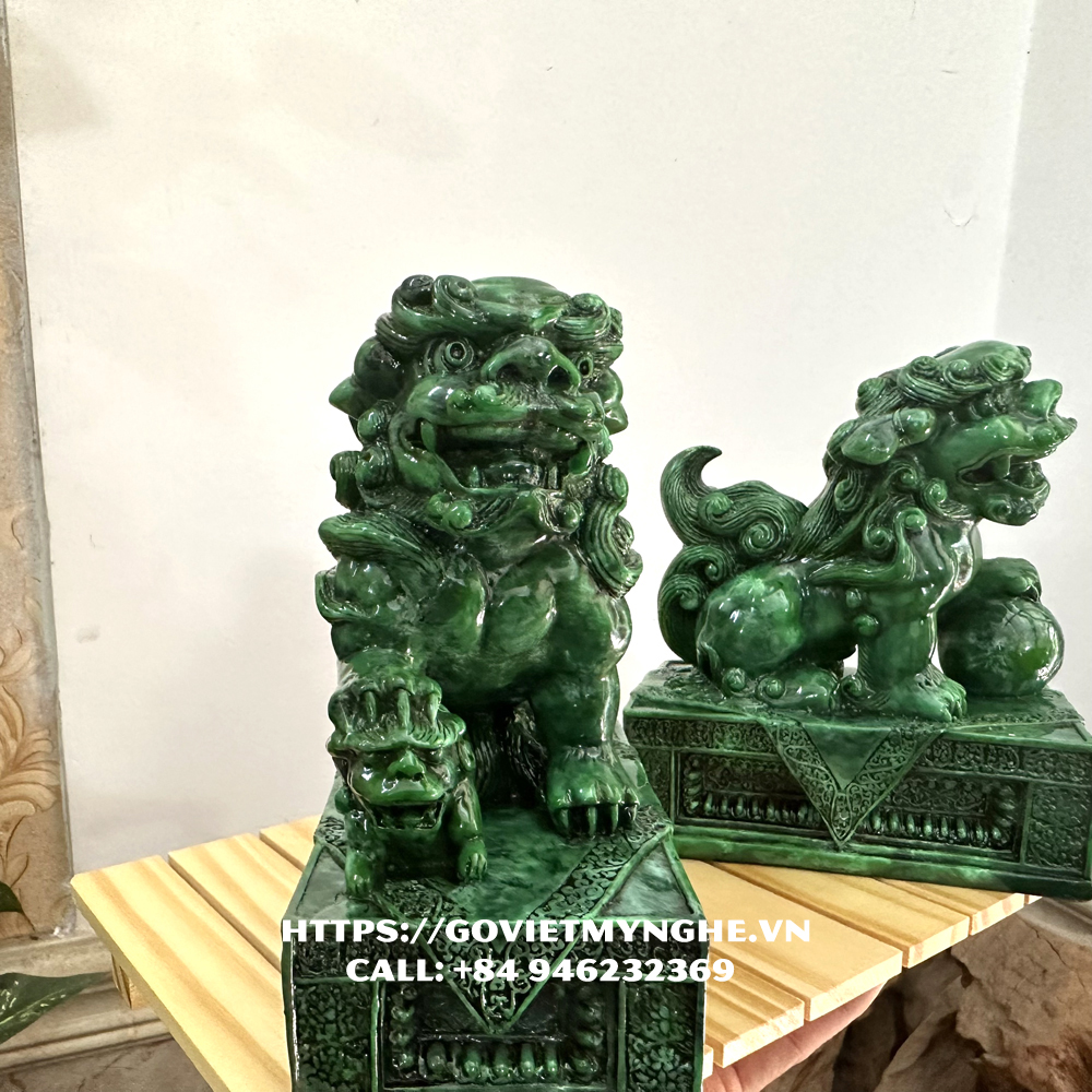[Kỳ lân phong thủy] Cặp 2 tượng kỳ lân trang trí phong thủy - Cỡ lớn - Màu xanh lục bích - Chiều cao 15cm