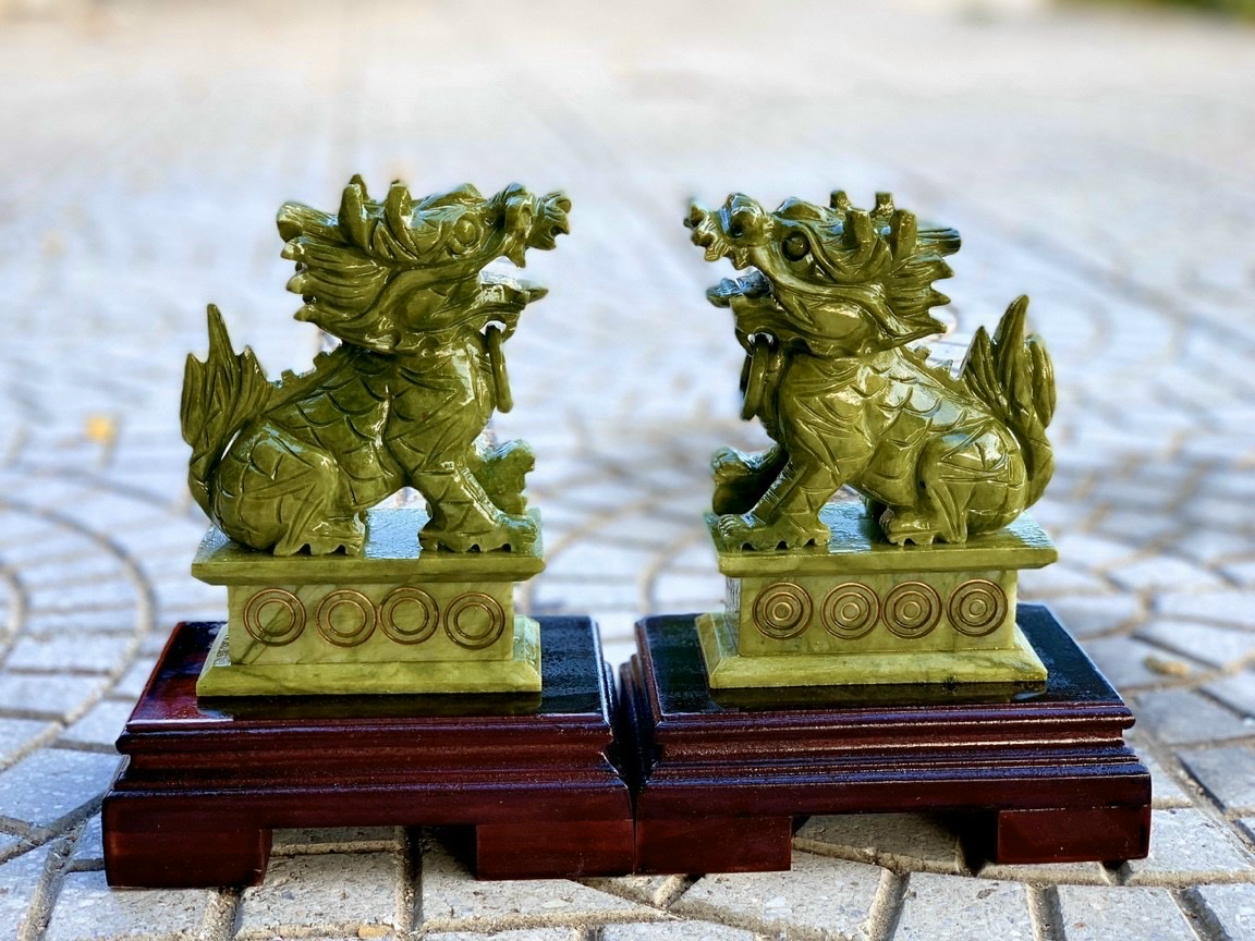 Cặp tượng Kỳ Lân phong thủy đá ngọc ấn độ - Cao 12cm