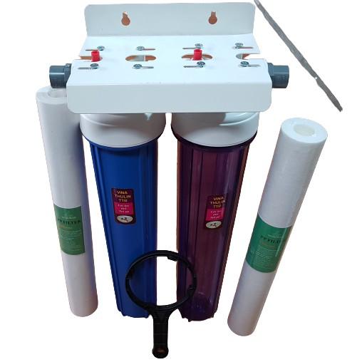 Cốc lọc nước 20inch lọc thô bộ đôi kèm lõi lọc giá treo