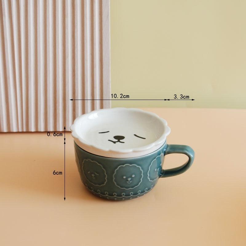 Cốc sứ có nắp đậy tạo hình Cừu trắng xinh xắn thể tích 260ml; siêu yêu làm cốc uống nước văn phòng, ăn dặm, ngũ cốc quà tặng