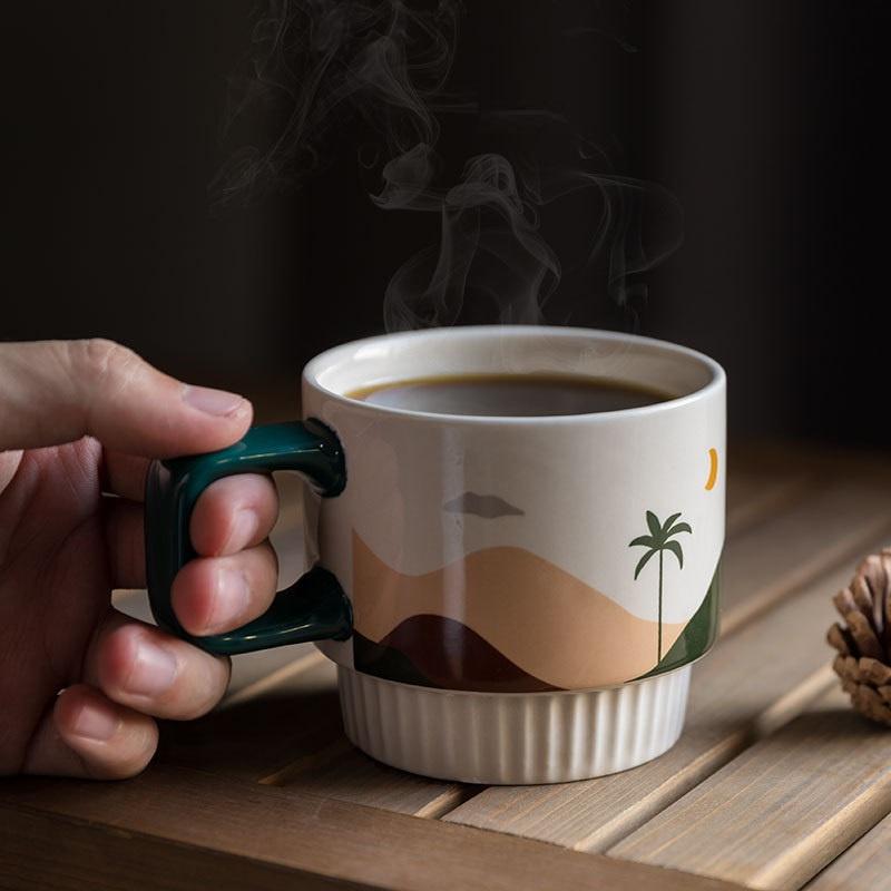 Quá đẹp ạ, đựng nước thôi cũng phải phong cách Cốc sứ nâu cao cấp uống trà, cafe phong cách vintage Thiết kế cực kỳ phù hợp để uống trà, cafe, họa tiết hạt cafe/hình học ...