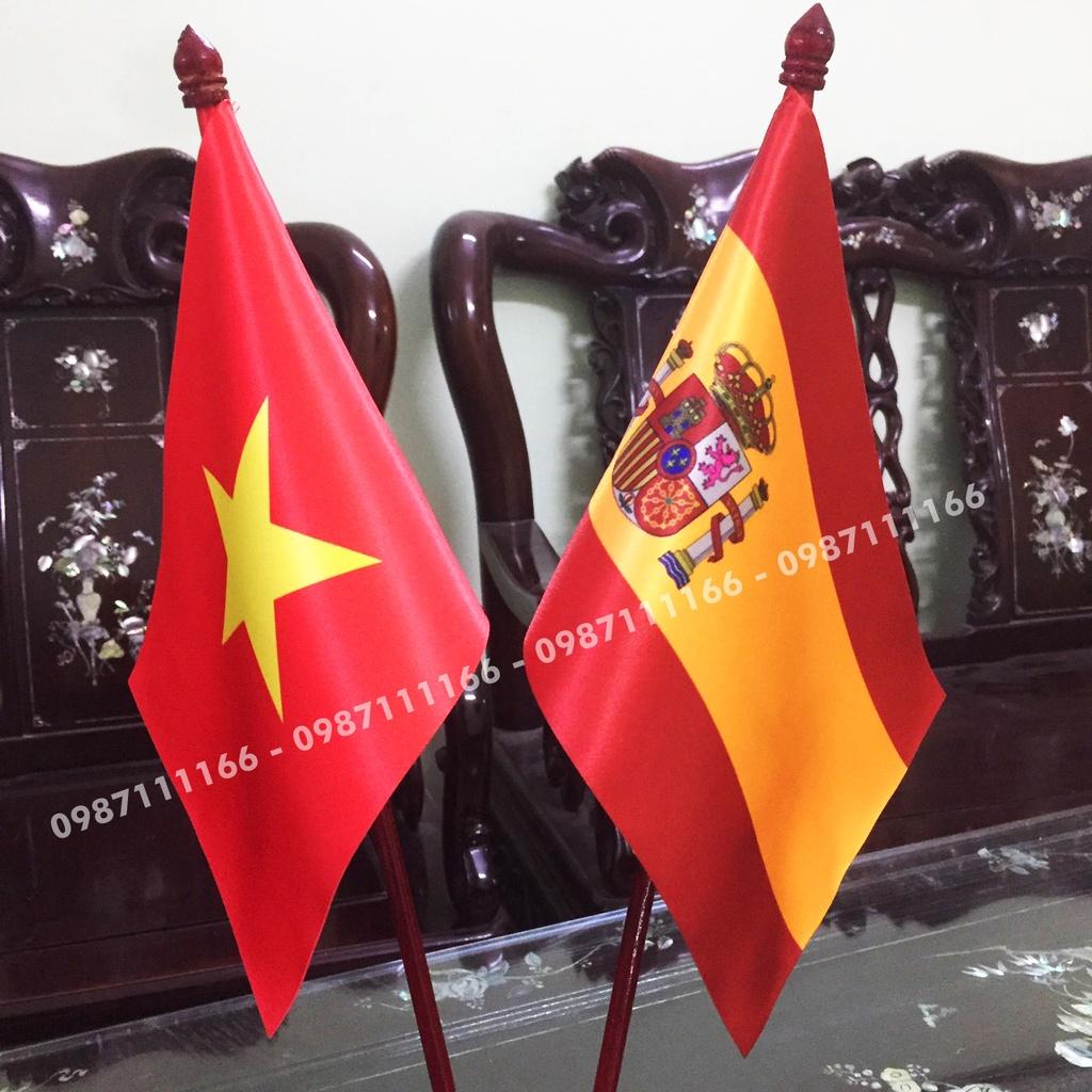Cờ Để Bàn Đế gỗ Cắm 2 cờ Việt Nam - Tây ban Nha In Kỹ Thuật Số