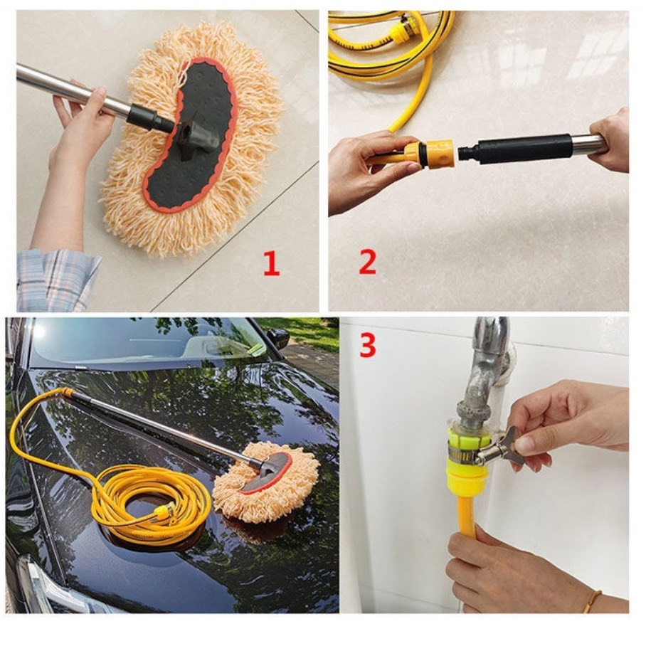 Chổi rửa xe 3 trong 1 kèm Vòi Nước, Chổi rửa xe đa năng, Vòi Xịt tăng áp rửa xe Ô TÔ