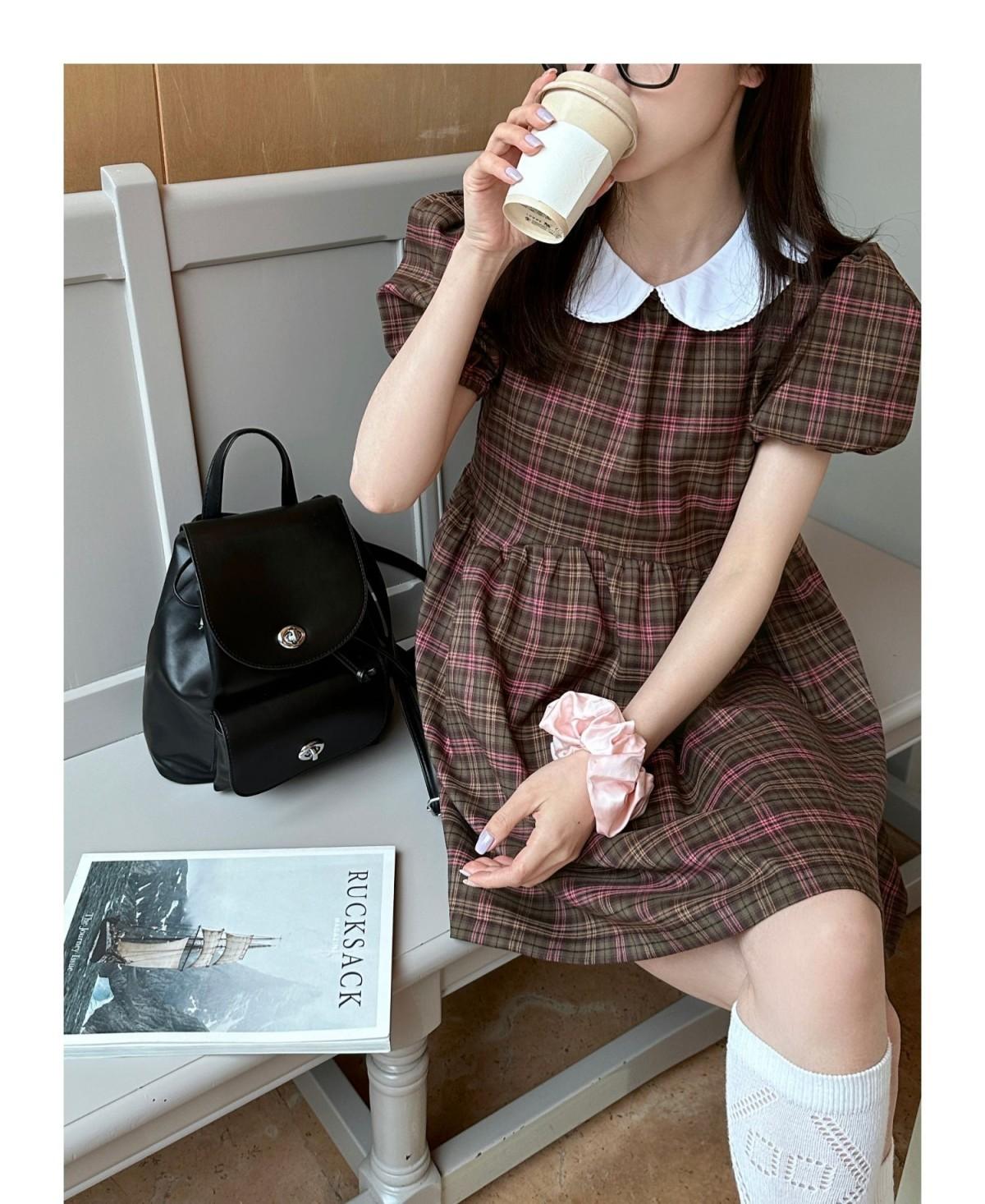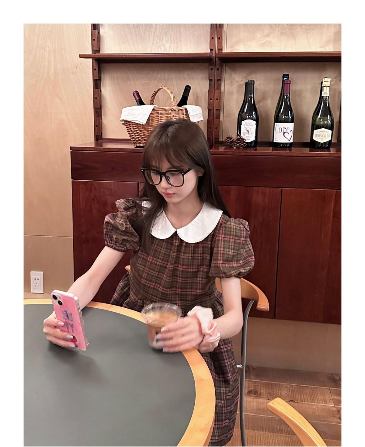 CHENGRUI Kiểm tra bong bóng tay áo kiểu Pháp búp bê cổ áo đầm 100 phù hợp với gầy lỏng lẻo ngọt ngào đám đông giảm tuổi ngắn tay áo váy ngắn