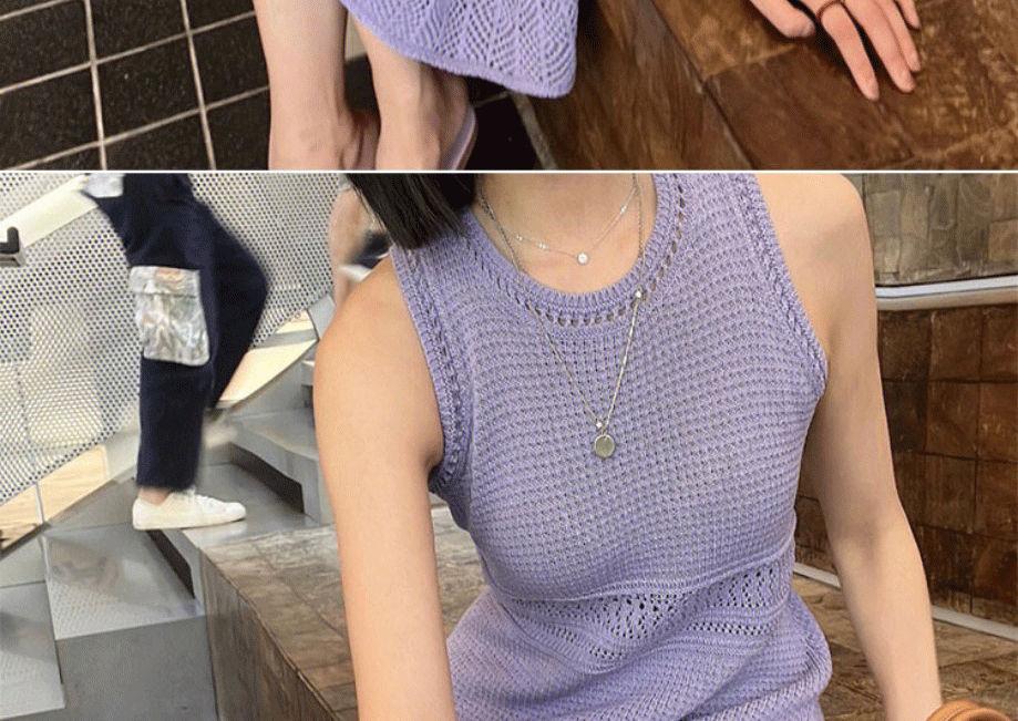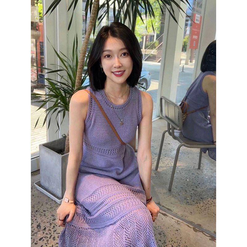 CHENGRUI Màu tím rỗng tay áo dệt kim đầm đám đông nhỏ thiết kế cảm giác Pháp khí chất treo Vest dài