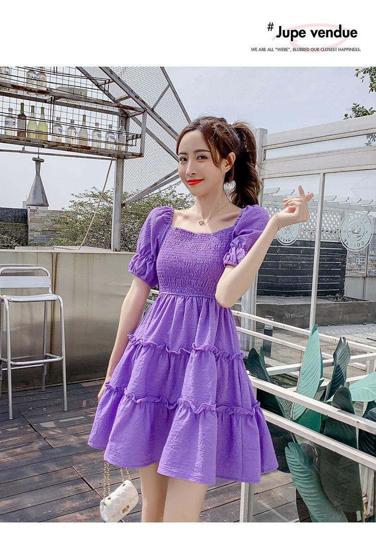 CHENGRUI Phụ nữ mùa hè 2023 Square Neck Pleated Bubble Sleeve Thu hẹp eo Khoai tây tím Vintage Pháp Orange Terrier Dress