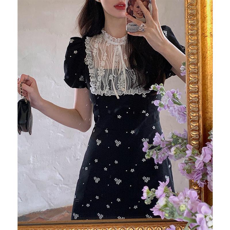CHENGRUI ren ghép trà nghỉ Pháp hoa đầm phụ nữ 2023 mùa hè sang trọng ngọt ngào