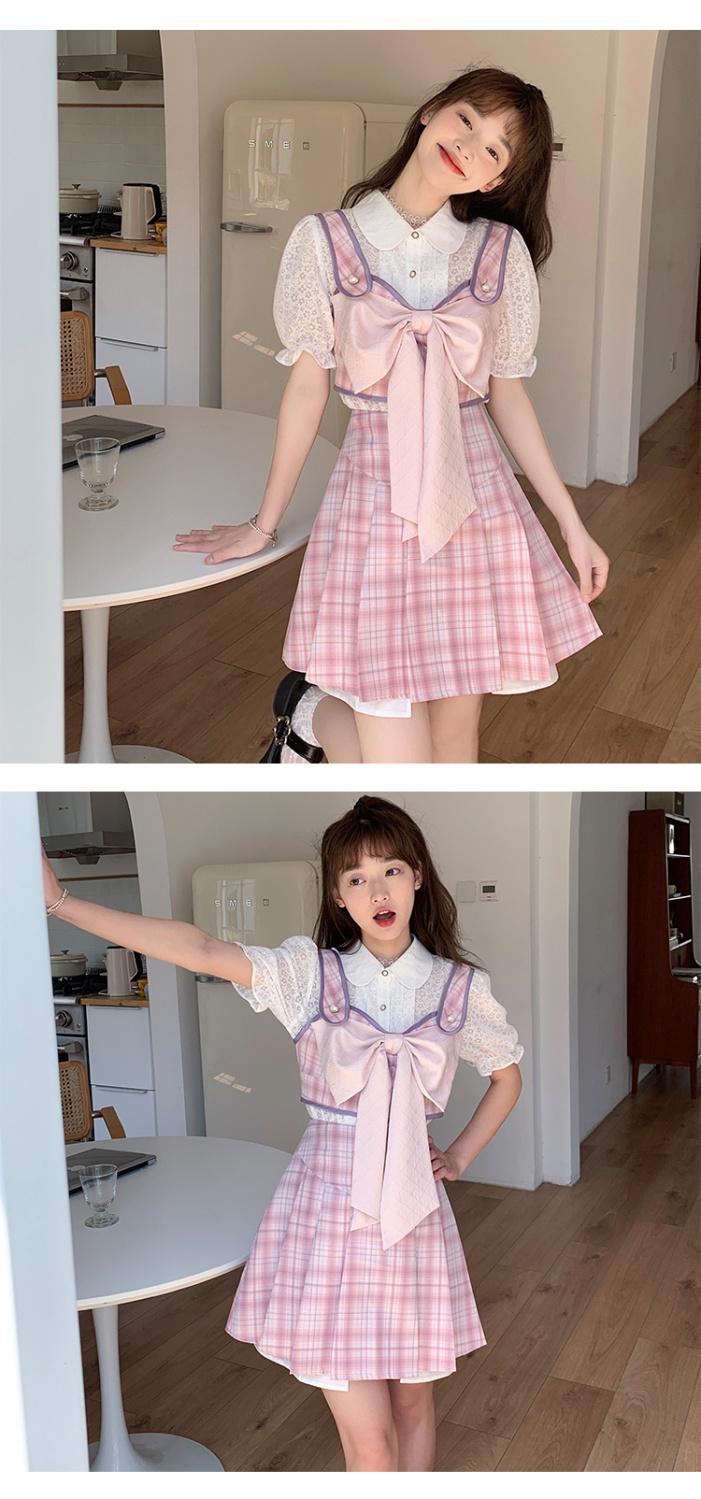 CHENGRUI tây ngọt ngào cay giảm tuổi học viện phong nửa người váy hai mảnh jk váy mùa hè dễ thương thiếu nữ cung bộ