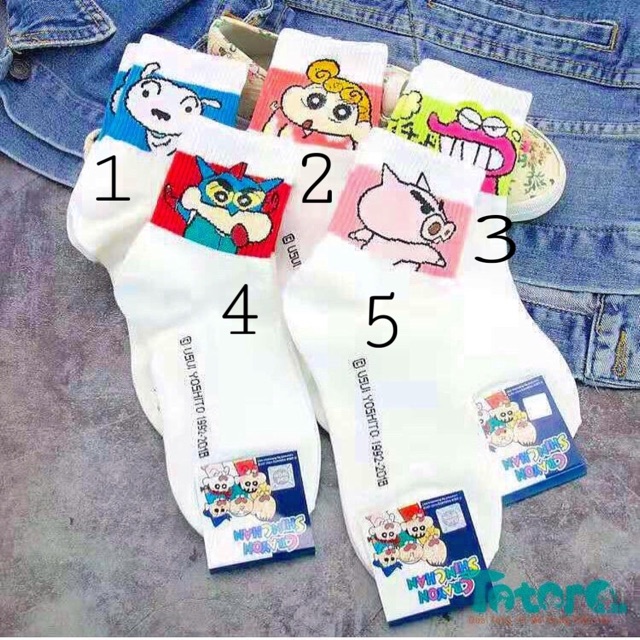 Tất hình Shinnosuke chất liệu sợi tổng hợp, co giãn thoải mái luôn. Tất nam nữ đều đi được....