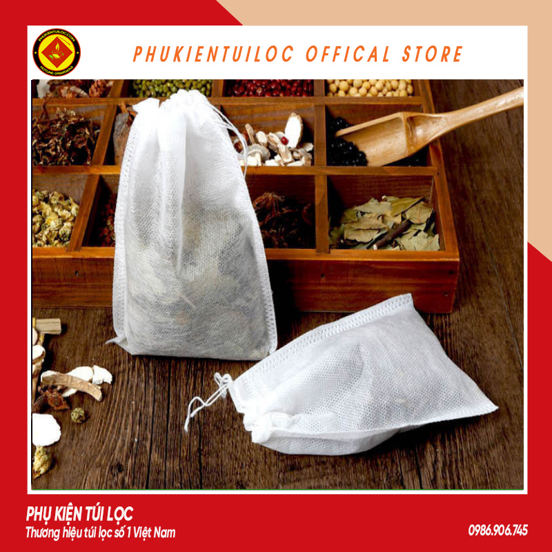 COMBO 100 TÚI LỌC TRÀ, CAFE, THẢO DƯỢC, NẤU ĂN... CÓ DÂY RÚT 12X14CM