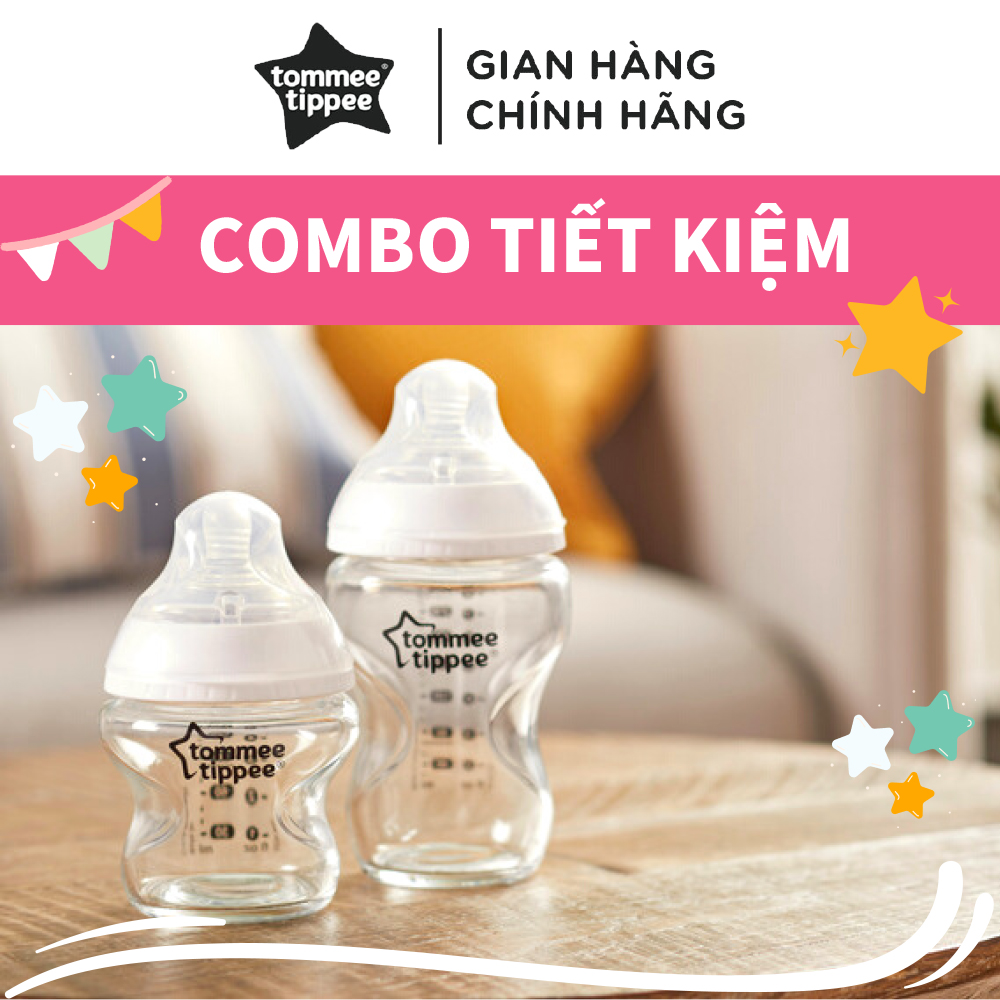 COMBO 2 Bình sữa thủy tinh ty siêu mềm tự nhiên Tommee Tippee Closer to Nature 150ml & 250ml