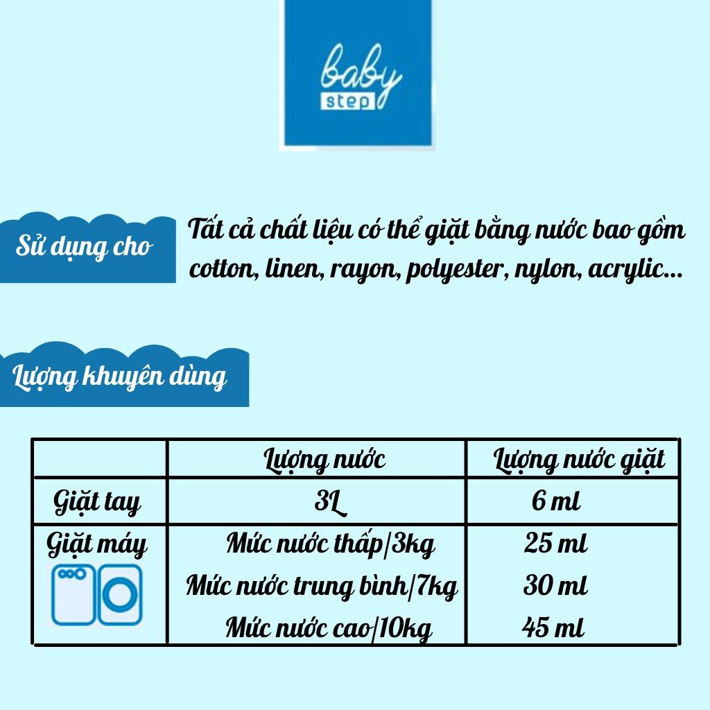 Combo 2 nước giặt quần áo cho bé hữu cơ Baby Step dung tích 1000ml hương phấn thơm an toàn cho làn da Nước giặt quần áo hữu cơ cho bé Baby Step 1000ml sức mạnh giặt tẩy vượt trội từ enzyme tự nh...