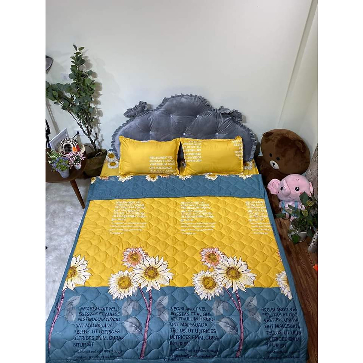 * Combo 5 Món Chăn Ga Gối Cotton Poly Hàn Quốc Mẫu Hướng Dương Đậm* Vỏ gối đầu kích thước nhỏ nên có nhiều cái không giống như hình- MUA 1 NHẬN 5 - NHẬN ĐỦ 5 MÓN:+ 1 Chăn trần bông 2 mặt 3 lớp (1m8x2m...