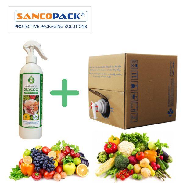 Combo Chai Nước xịt 500ml và Thùng 20 lit nước rửa khử trùng thực phẩm rau củ quả sinh học SUSACO