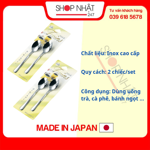 Set 2 thìa inox Twins uống trà Chất liệu : Inox cao cấp, an toàn tuyệt đối khi sử dụng. Thìa Twins có dáng nhỏ phù hợp uống trà, cafe, ăn kem, sữa chua… Ngoài ra có thể dùng cho bé ăn dặm rất vừa vặn. Giá sản phẩm trên Tiki đã bao gồm thuế theo luật hiện hành. Bên cạnh đó, tuỳ vào loại sản phẩm, hình thức và địa chỉ giao hàng mà có thể phát sinh thêm chi phí khác như phí vận chuyển, phụ phí hàng cồng kềnh, thuế nhập khẩu (đối với đơn hàng giao từ nước ngoài có giá trị trên 1 triệu đồng).....