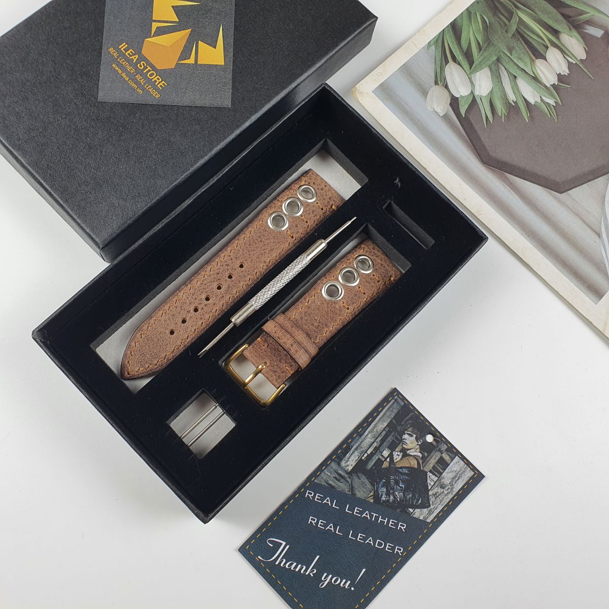 ILEATHER STORE CAM KẾT: - Tất cả các sản phẩm của xưởng đều được chế tác từ da thật 100% - Phát hiện giả da đền gấp 10 lần- Tất cả sản phẩm được bảo hành 3 năm về da ------------------------------------------------------------------------------- Đặc điểm nổi bật - Phù hợp làm quà tặng, quà sinh nhật,… - Thích hợp cho một sự khởi đầu mới, một công việc mới,… - Size dây 20mm / 22mm, có 2 phiên bản khóa lựa chọn: Khóa thường / Khóa bướm - Hoàn toàn được làm thủ công từ da bò thật 100%, dòng da sáp cao cấp, cực chất - Chế độ bảo hành lên tới 3 năm ----------------------------------------------- CHẤT LIỆU SẢN PHẨM Sản phẩm được làm hoàn toàn bằng thủ công với chất liệu da bò sáp cao cấp siêu bền, siêu mềm. Không bong tróc hay nổ da giúp người dùng hoàn toàn yên tâm trong quá trình sử dụng.Tính đàn hồi tốt, tuổi thọ cao trong quá trình sử dụng CHI TIẾT SẢN PHẨM Mặt bên trong là lớp lót da bò trơn cao cấp giúp người dùng thoải mái nhất khi tiếp xúc cùng da tay Đường chỉ được may một cách tỉ mỉ, tinh tế bởi bàn tay những nghệ nhân lành nghề nhất của iLeather Store KÍCH THƯỚC SP Size 20mm (20mm - 18mm) Size 22mm (22mm - 20mm) KẾT HỢP PHỤ KIỆN Chất liệu da bò sáp cao cấp giúp sản phẩm bền đẹp trong một thời gian dài Bạn có thể thoải mái kết hợp cùng Apple Watch hoặc bất cứ mặt đồng hồ nào khác; tự tin hơn với một chiếc đồng hồ da xịn Phù hợp ngay cả khi mặc trang phục lịch lãm hay bộ trang phục trẻ trung, năng động CHÍNH SÁCH SẢN PHẨM Giao hàng toàn quốc, thanh toán sau khi nhận hàng Đổi trả hàng trong vòng 15 ngày BỘ SẢN PHẨM Dây đồng hồ + Hộp + Khóa chốt + ToolThẻ bảo hành + Hướng dẫn sử dụng2 phiên bản dây lựa chọn: phiên bản khóa thường / Phiên bản khóa bướm ----------------------------------------------------------- TẠI SAO BẠN NÊN LỰA CHỌN ILEATHER STORE iLeather Store không bán đồ da cho bạn... Chúng tôi bán cho bạn sự hài lòng, sự sang trọng và chất đàn ông đến từ những sản phẩm bằng da bò thật 100%. Những sản phẩm của chúng tôi cam kết bảo hành trong 36 tháng và hơn thế nữa... Với đồ da iLeather Store , bạn thực sự là một Leader.Niềm tin và sự hài lòng của khách hàng chính là chìa khóa, là sự thành công của chúng tôi. Được thành lập từ năm 2014, với nhiềunăm kinh nghiệm trong sản xuất và phân phối đồ da thật, xưởng Ileather Store tự tin mang đến những sản phẩm hoàn thiện, là một sự lựa chọn hoàn hảo của các Leader thực thụ! #Day_da_dong_ho; #Day_dong_ho_da_that; #Day_da_dong_ho_nam#Day_dong_ho_handmade; #Day_dong_ho_thu_cong; #Day_dong_ho_da_bo Giá sản phẩm trên Tiki đã bao gồm thuế theo luật hiện hành. Bên cạnh đó, tuỳ vào loại sản phẩm, hình thức và địa chỉ giao hàng mà có thể phát sinh thêm chi phí khác như phí vận chuyển, phụ phí hàng cồng kềnh, thuế nhập khẩu (đối với đơn hàng giao từ nước ngoài có giá trị trên 1 triệu đồng).....Sản phẩm này là tài sản cá nhân được bán bởi Nhà Bán Hàng Cá Nhân và không thuộc đối tượng phải chịu thuế GTGT. Do đó hoá đơn VAT không được cung cấp trong trường hợp này.