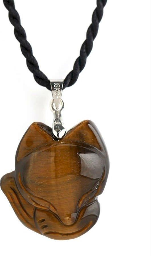 Dây Đeo Và Mặt Hồ Ly Dáng Ngồi Đá Mắt Hổ - Vàng Nâu