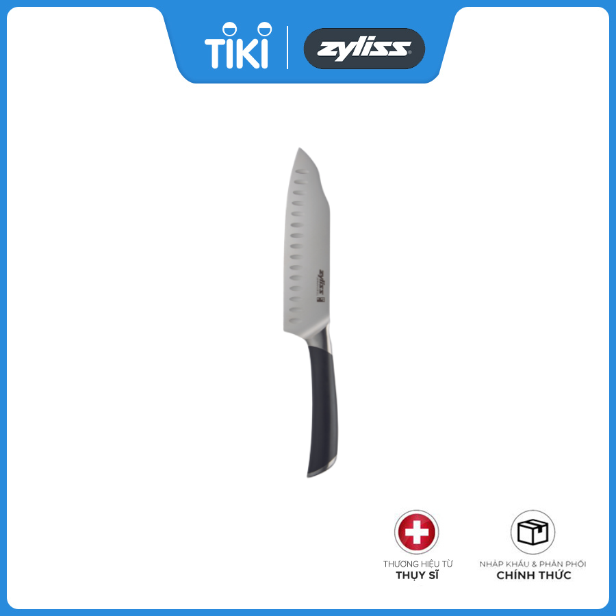 Thiết kế độc đáo, con dao của Zyliss - Comfort Pro Chef sẽ dễ dàng trở thành con dao đồng hành của bạn trong nhà bếp. Thích hợp cho hầu hết mọi công việc chuẩn bị nhà bếp, lưỡi dao làm bằng thép không gỉ 15 ° của Đức siêu sắc bén được làm lạnh bằng đá sẽ lướt qua sản phẩm một cách dễ dàng giúp bạn dễ dàng cắt và thái. The Comfort Pro Santoku knife has indentation along the blade to ensure less food sticks. The ice-hardened 15° German Stainless steel blade glides through produce that is typically harder to cut, such as butternut squash. The ergonomic handle has been designed for ultimate comfort in everyday use. It fits perfectly in the hand and features a tapered bolster that allows a firm grip in use. The finger indent on top of the handle provides a comfortable position for placing the index finger when slicing with precision. English description:The Comfort Pro Santoku knife has indentation along the blade to ensure less food sticks. The ice-hardened 15° German Stainless steel blade glides through produce that is typically harder to cut, such as butternut squash. The ergonomic handle has been designed for ultimate comfort in everyday use. It fits perfectly in the hand and features a tapered bolster that allows a firm grip in use. The finger indent on top of the handle provides a comfortable position for placing the index finger when slicing with precision.Giá sản phẩm trên Tiki đã bao gồm thuế theo luật hiện hành. Bên cạnh đó, tuỳ vào loại sản phẩm, hình thức và địa chỉ giao hàng mà có thể phát sinh thêm chi phí khác như phí vận chuyển, phụ phí hàng cồng kềnh, thuế nhập khẩu (đối với đơn hàng giao từ nước ngoài có giá trị trên 1 triệu đồng).....