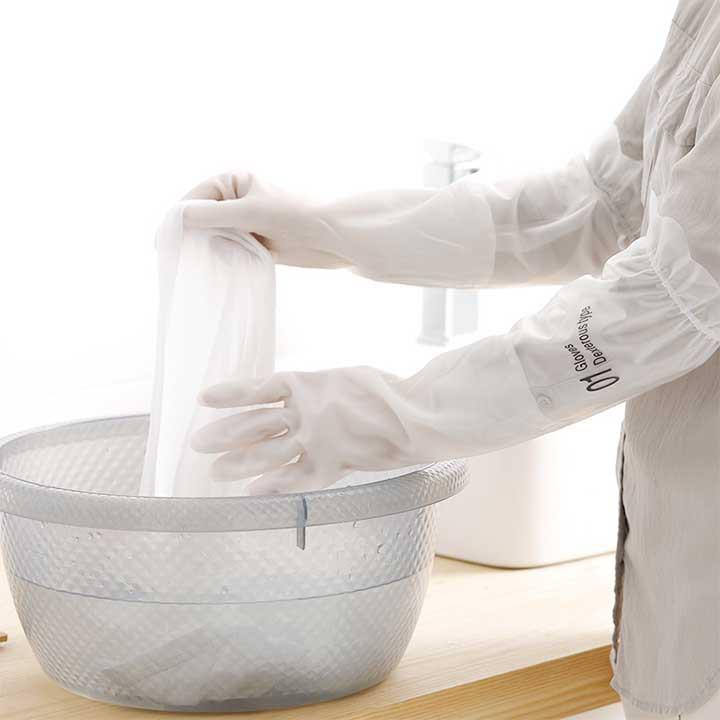 Găng Tay Cao Su Lót Nỉ Loại Dài Có Dây Chun - Găng Tay Rửa Bát