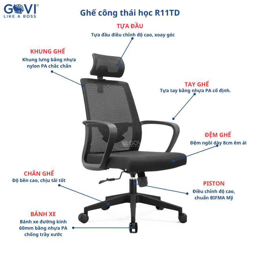 Ghế xoay văn phòng GOVI Ryan R11TD Ghế làm việc tựa đầu