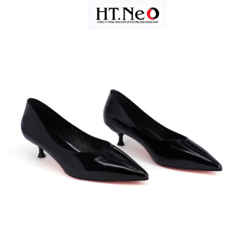Giày cao gót HT.NEO gót trụ da bóng trơn mũi nhọn, thiết kế đơn giản, trẻ trung CS231