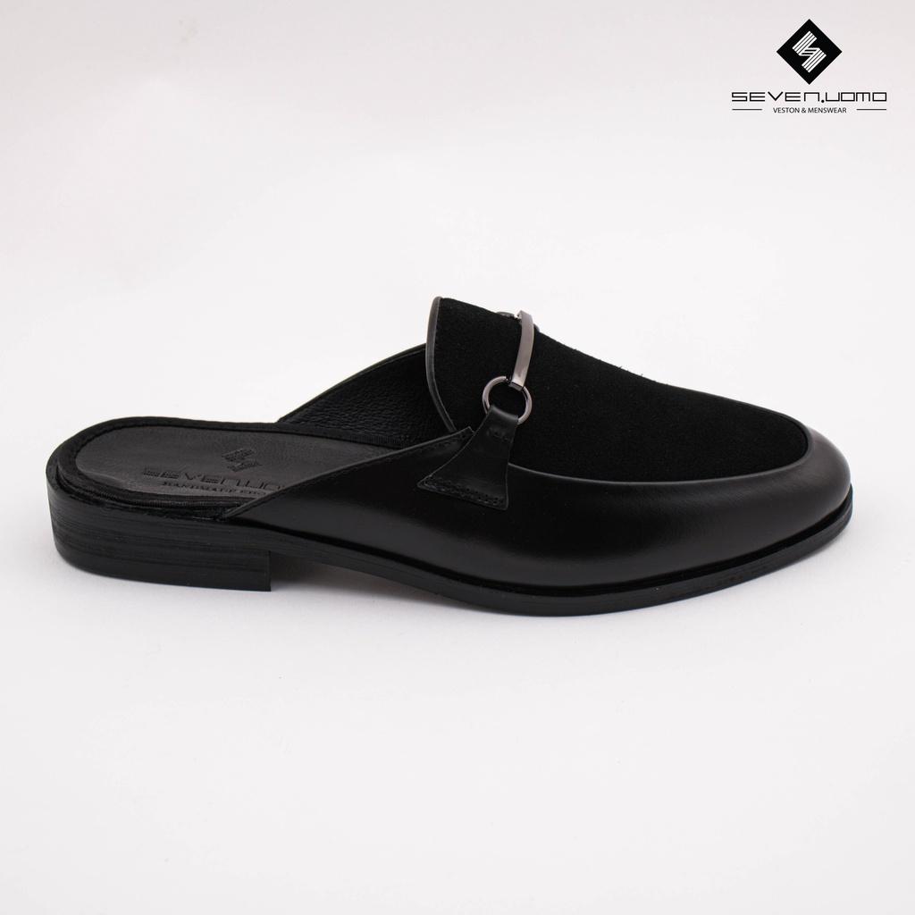 GIÀY SỤC SLIPPER NAM CAO CẤP MÀU ĐEN ĐÁP DA LỘN SEVEN UOMO GS-D102