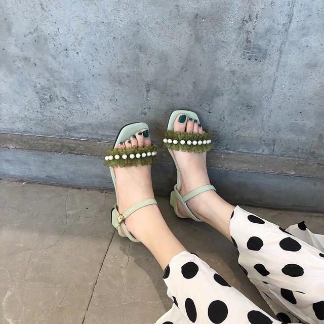 Giày cao gót nữ, Giày cao gót nữ, ***Thông tin sản phẩm -Sản phẩm: Giày sandal, giày cao gót nữ 5p quai bản ngang kết ren phối hạt châu -Chất liệu da: mềm -Nơi sản xuâ...