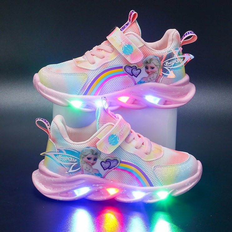 Giày thể thao bé gái in hình công chúa elsa có đèn phát sáng