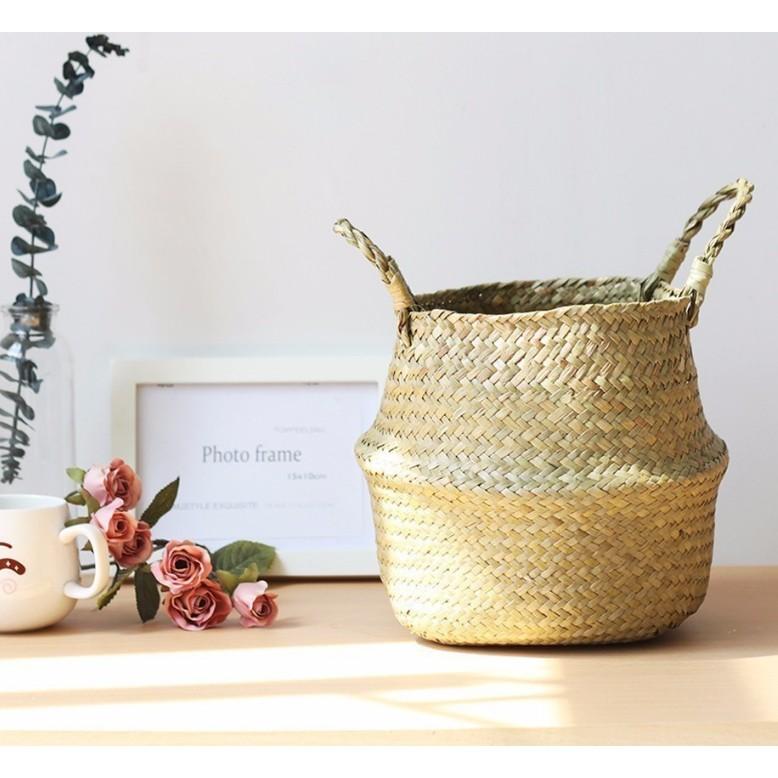 Giỏ cói tự nhiên kích thước 25cm x 27cm - Dùng để đựng đồ, trồng cây trang trí, decor