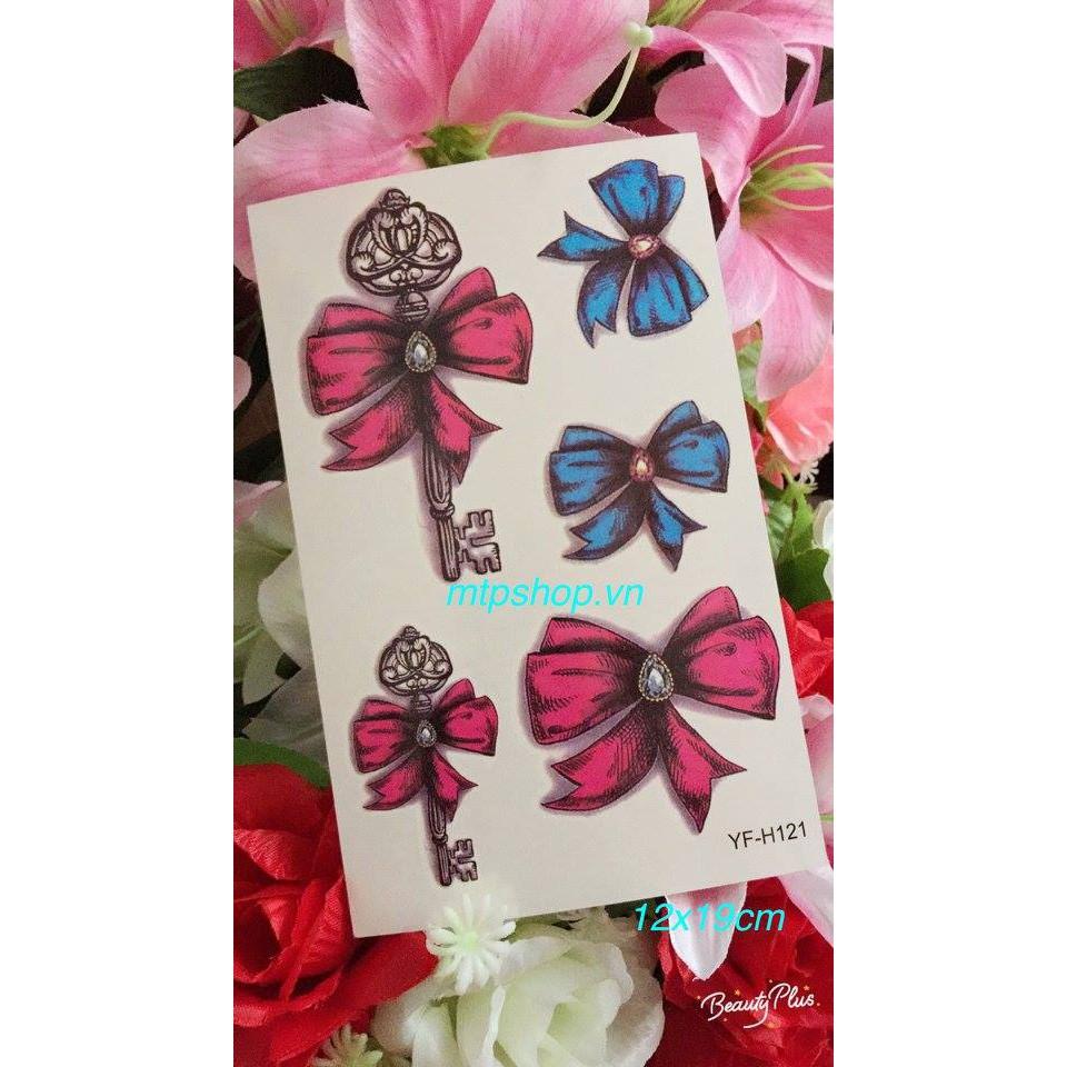Hình xăm dán nơ màu bắp tay- mua 2 tấm tặng 10x20cm
