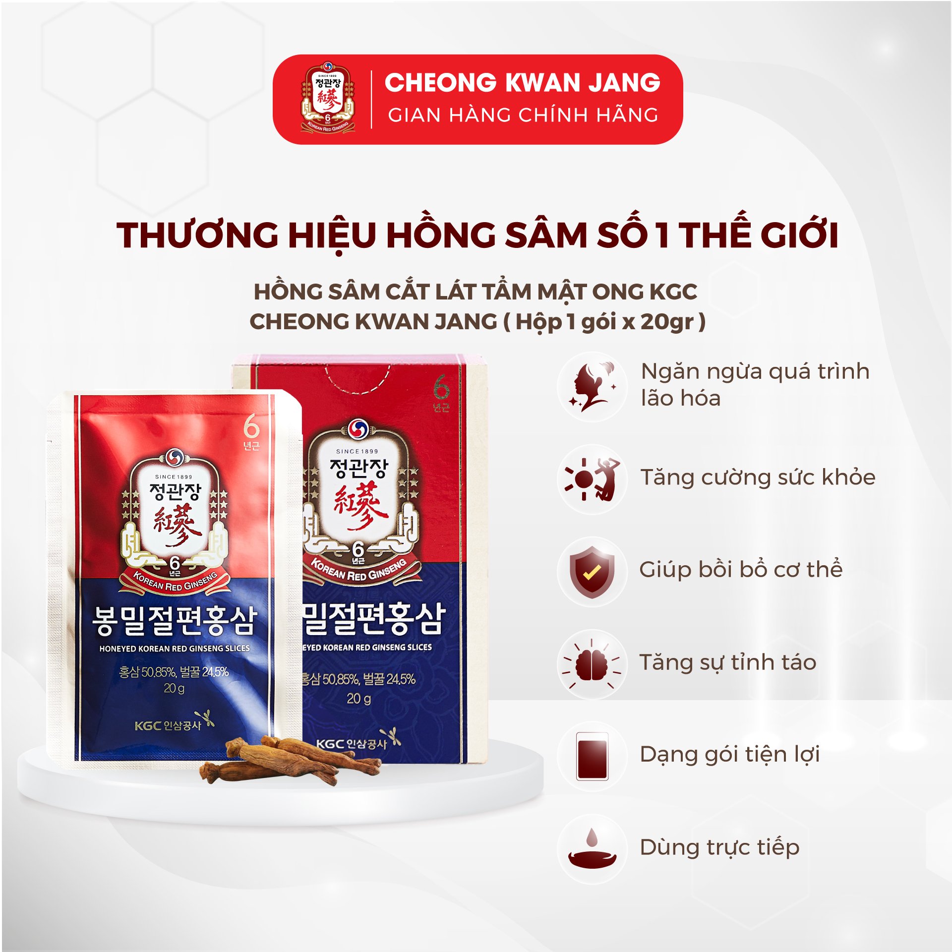 Hồng Sâm Hàn Quốc Cắt Lát Tẩm Mật Ong Thượng Hạng KGC Cheong Kwan Jang