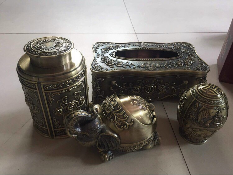 Bộ combo 4 món phòng khách cực chấtChất liệu đồng cao cấp, sáng bóngHọa tiết hoa văn đẹp, gia công tỉ mỉGồm có hộp đựng giấy, hộp đựng trà, gạt tàn và lọ tămGiao màu ngẫu nhiên...