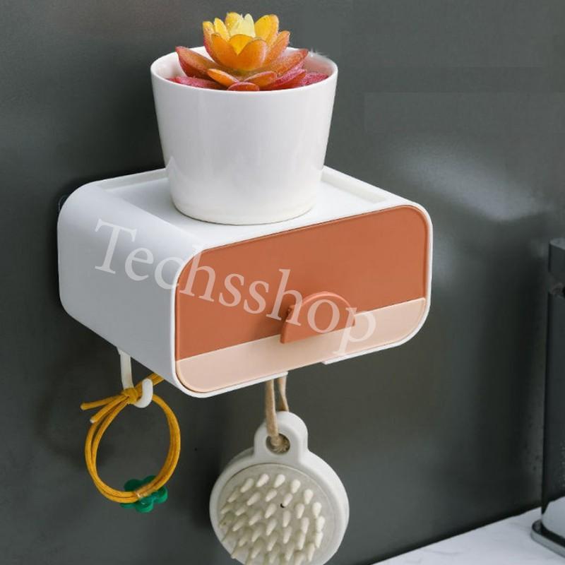 Hộp Đựng Xà Phòng 1 Tầng Có Ngăn Chứa Nước Dán Tường Kèm Theo 3 Móc Treo - Kệ Nhà Tắm Đế Đồ Tiện Lợi