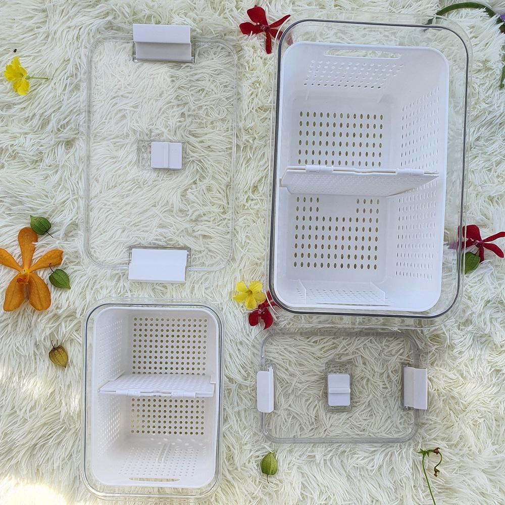 Hộp kèm rổ đựng thực phẩm tủ lạnh cất trữ cao cấp, chất liệu tốt NEMI